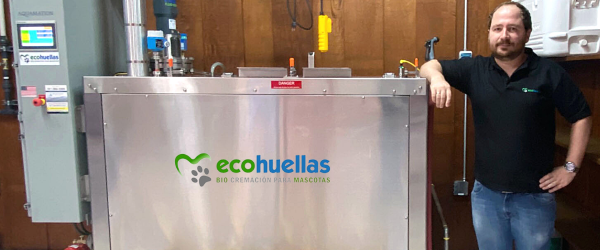 Eco Huellas utiliza un proceso de cremación basado en el uso del agua, que se conoce como hidrólisis alcalina. Es el mismo proceso que ocurre de forma natural cuando un cuerpo es puesto a descansar en la tierra. Se utiliza una combinación de agua, temperatura y alcalinidad para acelerar este proceso natural. Es una alternativa a la cremación tradicional o un entierro común, además de ser sostenible con el medio ambiente ya que usa menos energía, no genera emisiones de CO2, la huella de carbono es mucho menor y a su vez es más económico que los demás procesos. Es un método gentil, respetuoso y realizado en contenedores individuales para cada mascota.